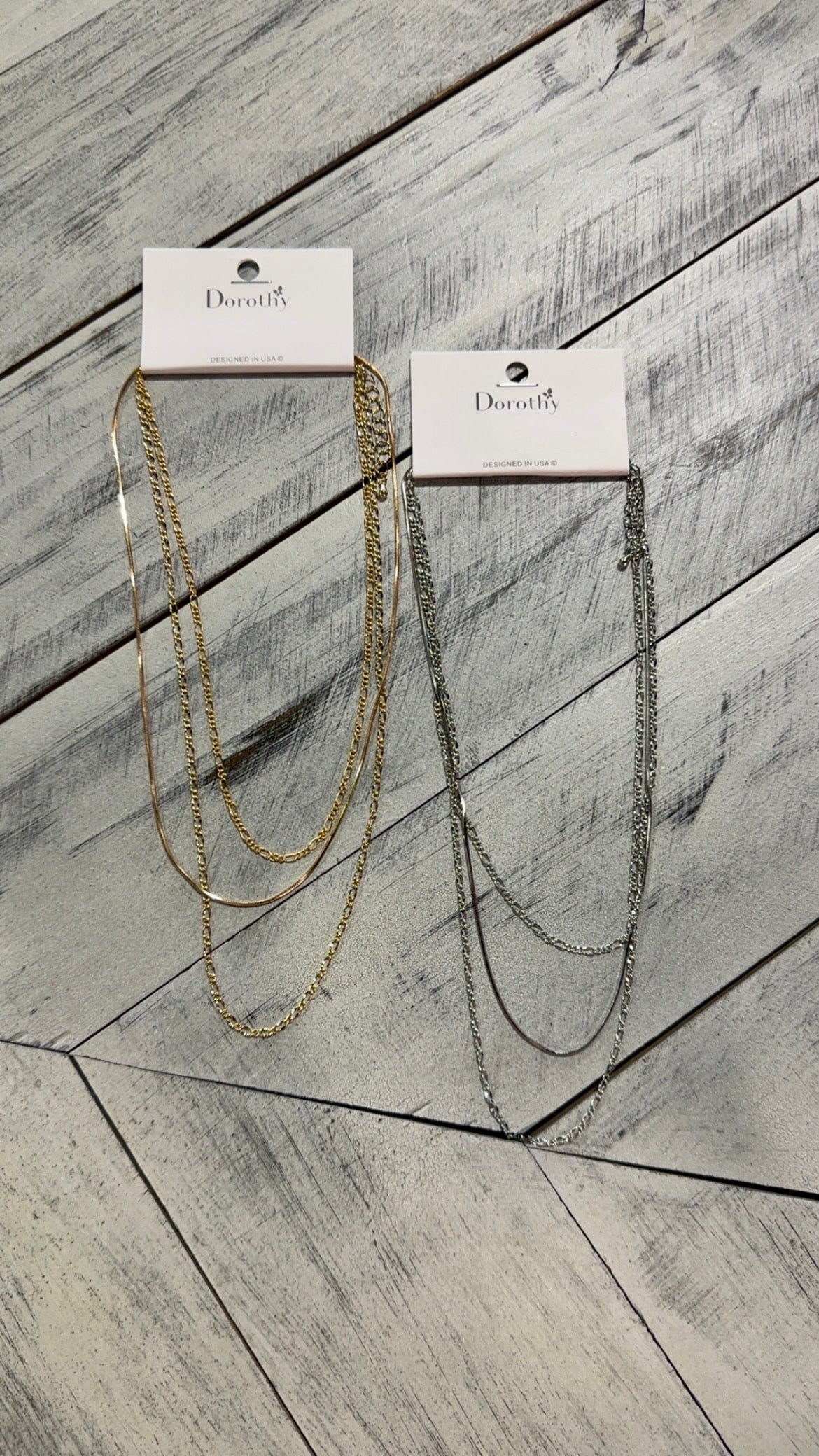 Gold 3 Layer Dainty Diamond & Circle Pendant Necklace