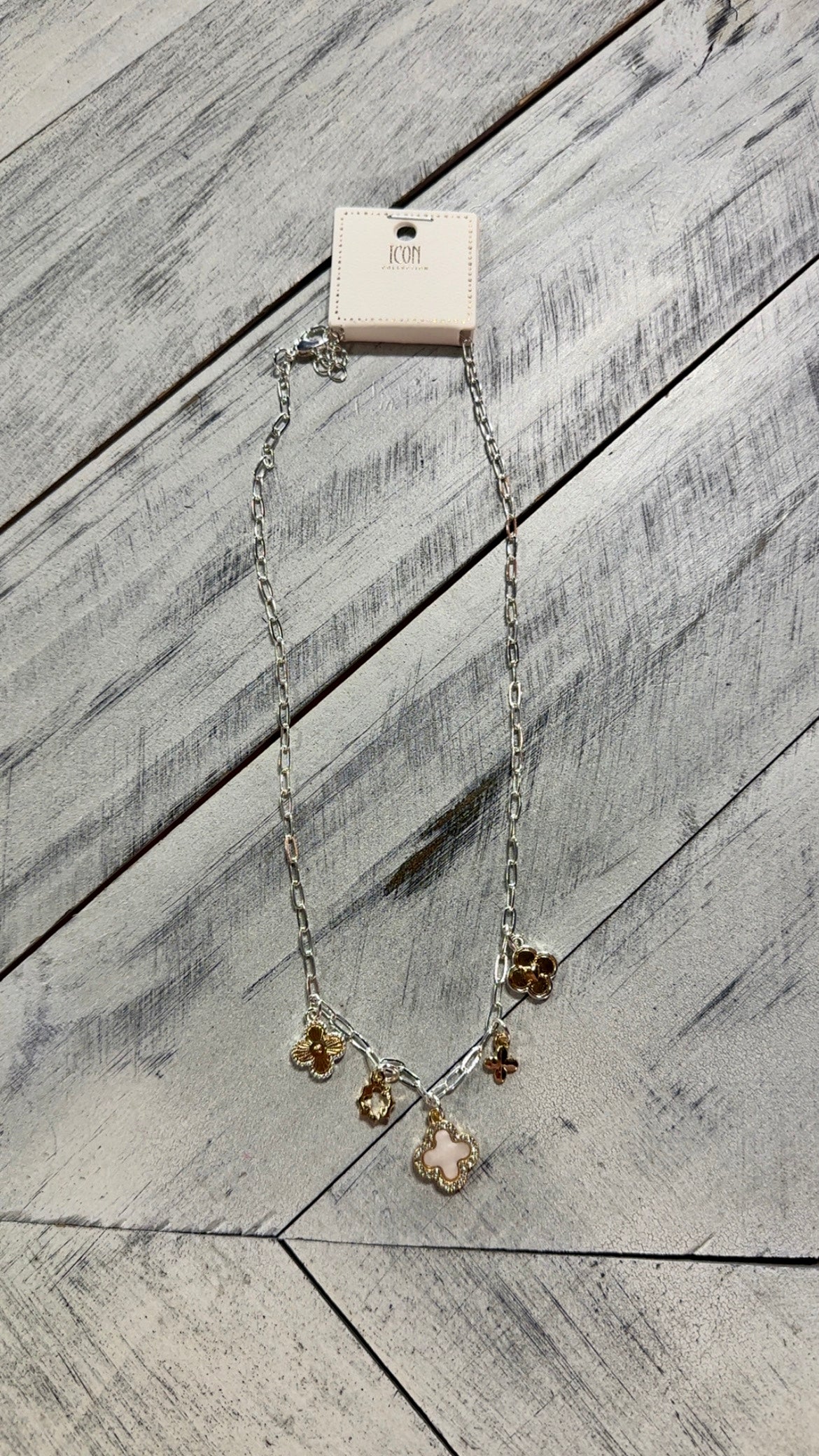 Gold & Silver Two-Tone Clover Pendant Necklace