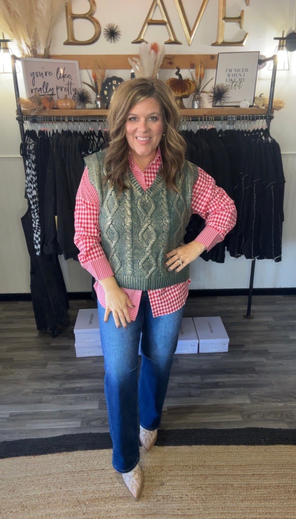 This vest runs true to size. Molly is wearing the size Medium and Madi is wearing the 1XL.